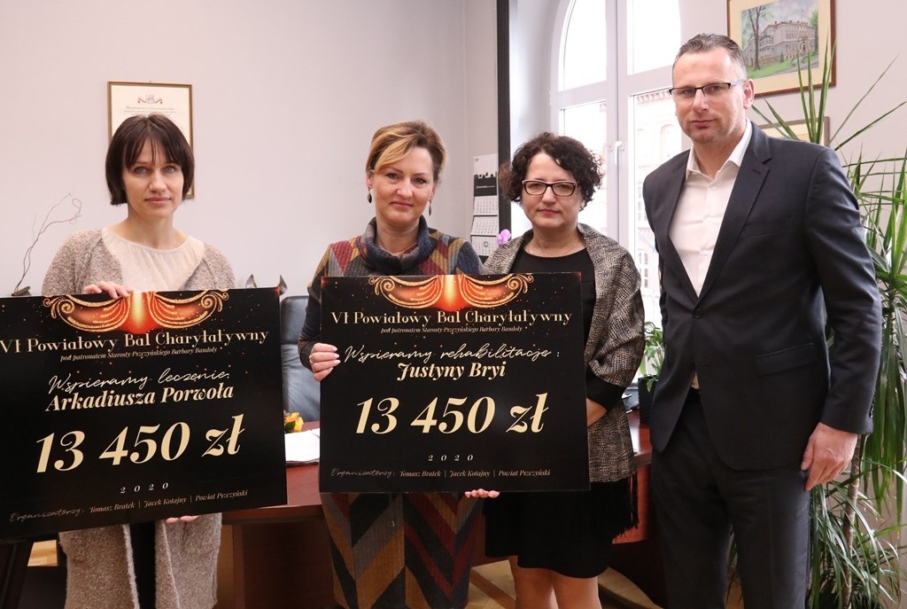 - Mieszkańcy powiatu mają ogromne serca. Dzięki szczodrości uczestników VI Powiatowego Balu Charytatywnego, przekazaliśmy dziś symboliczne czeki rodzinom na leczenie Arkadiusza Porwoła oraz rehabilitację Justyny Bryi. Łączny dochód z balu wyniósł 26 tys.900 zł. To ogromna kwota, która wsparła mieszkańców naszego powiatu - informuje Barbara Bandoła - starosta pszczyński