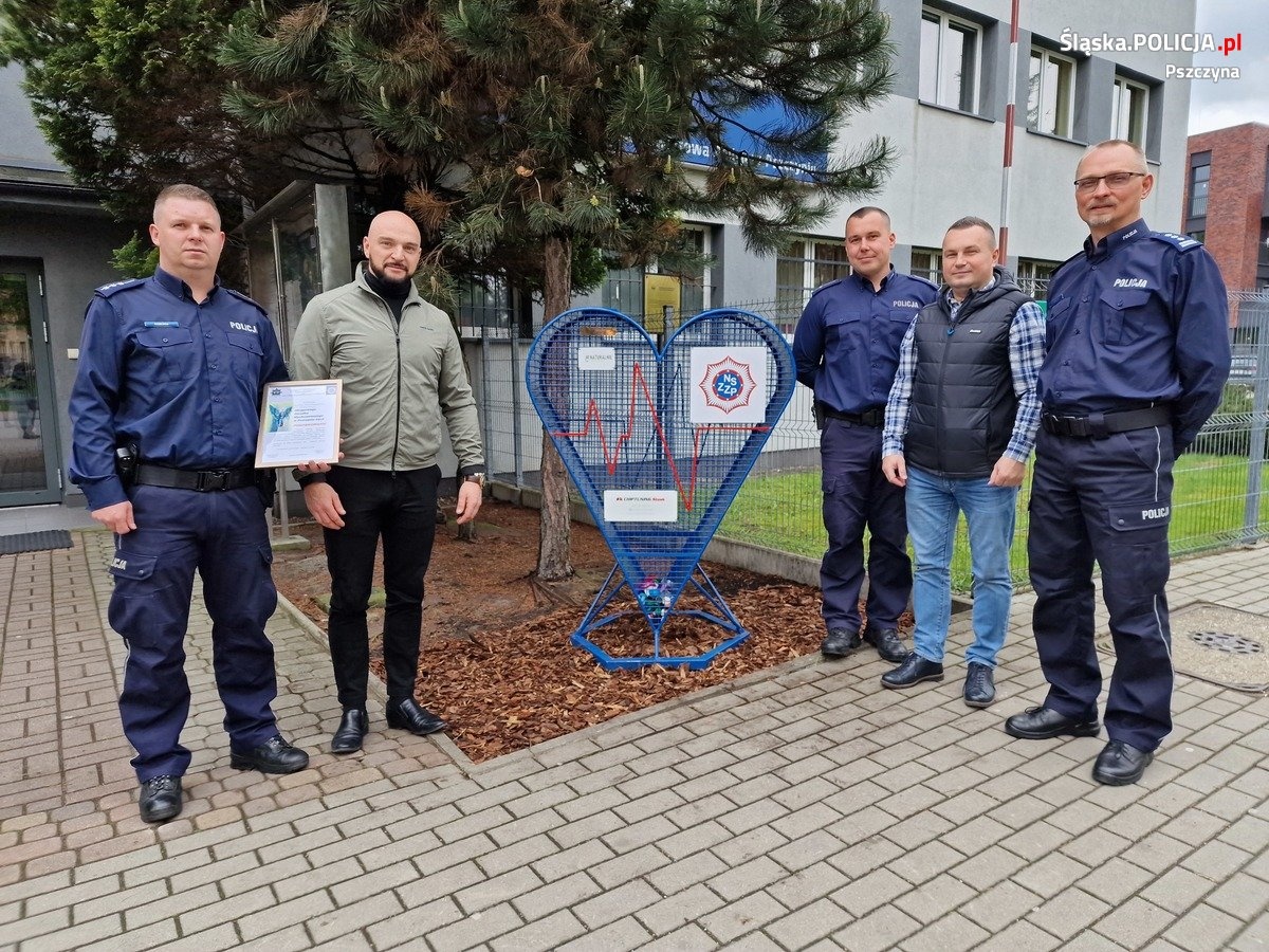 Przed pszczyńską komendą stanęło serce na plastikowe nakrętki, które następnie będą przekazywane osobom potrzebującym i fundacjom