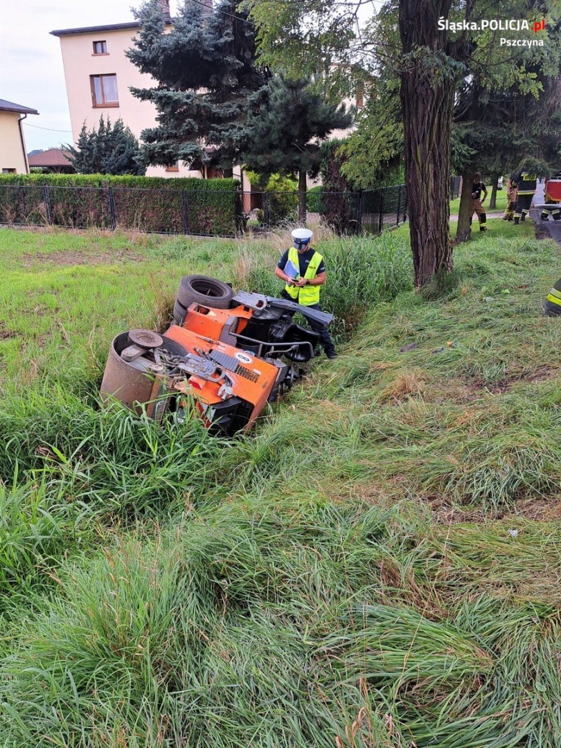 Wczoraj po godzinie 8 w miejscowości Kryry (w gminie Suszec, w powiecie pszczyńskim) doszło do poważnego wypadku, w którym walec drogowy przewrócił się i przygniótł pracownika. Poszkodowany mężczyzna to 31-letni mieszkaniec powiatu rybnickiego. Na miejsce zostali skierowani policjanci Wydziału Ruchu Drogowego, zespół Pogotowia Ratunkowego, a także helikopter załoga LPR. 31-letni mężczyzna był reanimowany. Po przywróceniu funkcji życiowych karetką pogotowia z obrażeniami głowy, klatki piersiowej i brzucha został przetransportowany do szpitala w Sosnowcu.