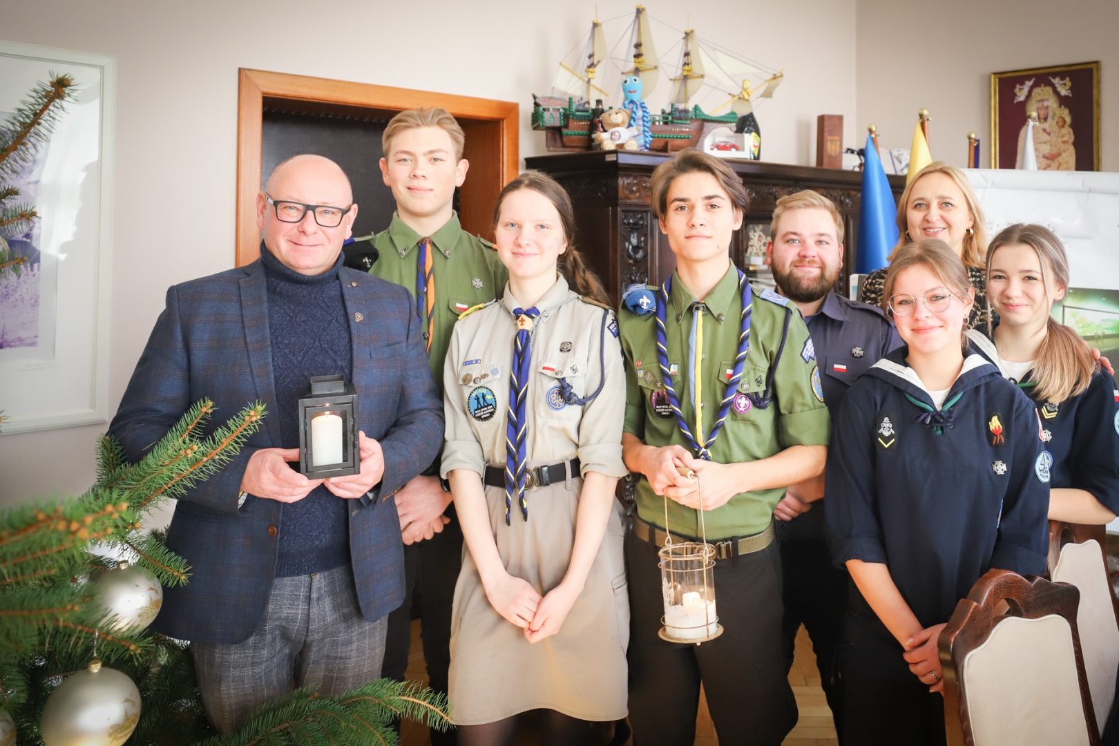 W poniedziałek harcerze z II Szczepu Harcerskiego "Chmura" im. hm. Józefa Pukowca w Pszczynie oraz 4 Harcerskiej Drużyny Wodnej przynieśli do ratusza Betlejemskie Światło Pokoju