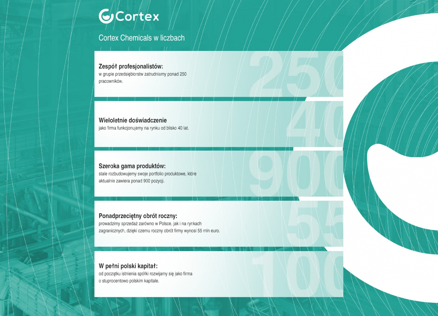 Wierzymy ponadto, że dobre relacje z partnerami biznesowymi stanowią fundament owocnej współpracy na każdym etapie. Jeśli Państwa firma jest zainteresowana ofertą Cortex Chemicals, czekamy na kontakt. Nasi doradcy chętnie odpowiedzą na wszelkie pytania i porozmawiają o aktualnych potrzebach Państwa firmy: https://cortexch.com/kontakt/