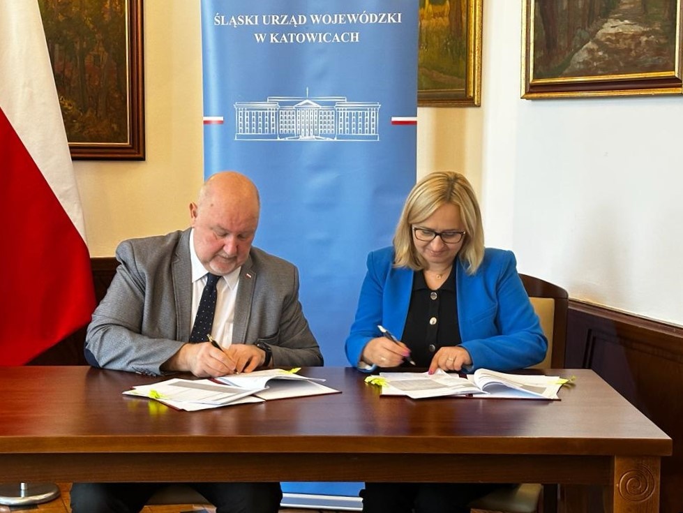 W ramach realizacji zadania gmina Pszczyna otrzyma 1 456 218 zł. Umowę podpisali wicewojewoda śląski Jan Chrząszcz oraz zastępca burmistrza Magdalena Czarnecka.