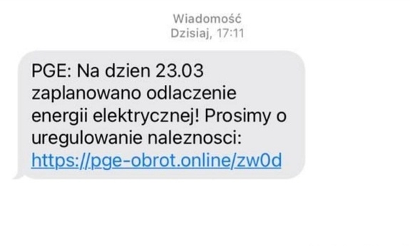 Policjanci ostrzegają przed oszustami podszywającymi się pod „PGE”, którzy za pośrednictwem wiadomości SMS, wzywają do uregulowania należności. Nie jest to nowy sposób oszustów, którzy niestety często wracają do starych i sprawdzonych metod. Podobna kampania phishingowa była wykorzystywana przez złodziei już w zeszłym roku. W wiadomości jest informacja o konieczności dokonania dopłaty oraz link, który ma pozwolić szybko rozwiązać problem. Prowadzi on na fałszywą stronę, gdzie ofiara ma do wyboru kilka metod płatności. W tym miejscu nastąpi próba wyłudzenia danych kart lub loginów oraz haseł do bankowości elektronicznej.