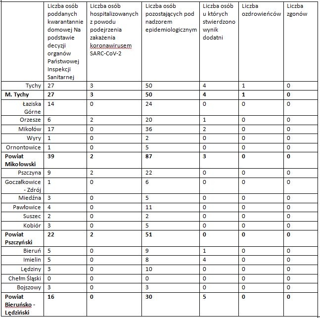 Informacja z dnia 6.04.2020 roku, godzina 14:00 związana z zagrożeniem nowym koronawirusem SARS-CoV-2 w rejonie objętym nadzorem PSSE w Tychach.