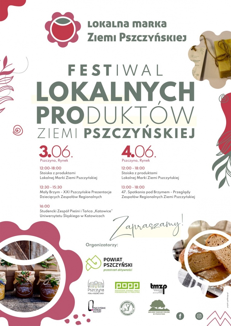 Pierwszy weekend czerwca będzie wielkim świętem zespołów regionalnych i lokalnych producentów. 3 i 4 czerwca na rynku w Pszczynie w godzinach od 12.00 do 18.00 odbędzie się Festiwal Lokalnych Produktów Ziemi Pszczyńskiej. W specjalnych stoiskach lokalni rolnicy, pszczelarze, rękodzielnicy, restauratorzy, koła gospodyń wiejskich i przedsiębiorcy będą oferować produkty wyróżnione znakiem jakości - Lokalną Marką Ziemi Pszczyńskiej.