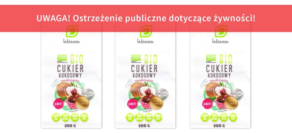 W związku ze stwierdzeniem niezadeklarowanej substancji alergennej – glutenu powyżej 80 mg/kg w próbce ekologicznego cukru kokosowego importer produktu z Holandii zdecydował o wycofaniu niektórych partii z obrotu. Jedna z wycofywanych partii została dostarczona do firmy Intenson Europe sp. z o.o., która zapakowała produkt w opakowania jednostkowe o wadze 350 g i 200 g oznakowane jak wskazano poniżej. Spożycie produktu przez osoby uczulone na gluten może wywołać reakcję alergenną.