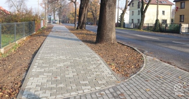 Za 73 tys. zł wymieniona została nawierzchnia chodnika wraz ze zjazdami na odcinku ponad 100 mb. Zakres robót objął też remont krawężników betonowych przy jezdni i odtworzenie nawierzchni drogi po ich wymianie, a także wykonanie pozostałych robót towarzyszących.