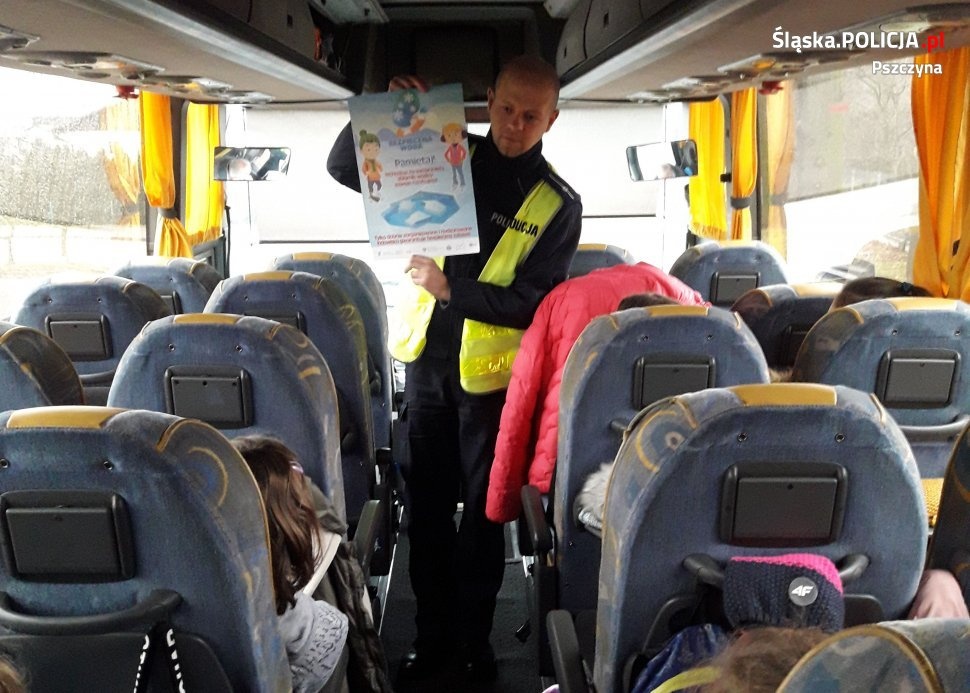 Wraz z rozpoczęciem ferii wzmógł się ruch autokarów przewożących małych pasażerów na zimowiska. Jak co roku, o bezpieczną podróż dzieci i młodzieży dbają policjanci, którzy kontrolują stan pojazdów i kierowców. Mundurowi z Pszczyny dodatkowo dbają o stan wiedzy uczestników wycieczek przypominając im podstawowe zasady bezpieczeństwa obowiązujące na stokach narciarskich, podczas jazdy autokarem, czy już w samych ośrodkach wypoczynkowych. Wszystko po to, aby każdy z nich bezpiecznie dotarł do celu i po zasłużonym odpoczynku szczęśliwie wrócił do domu.
