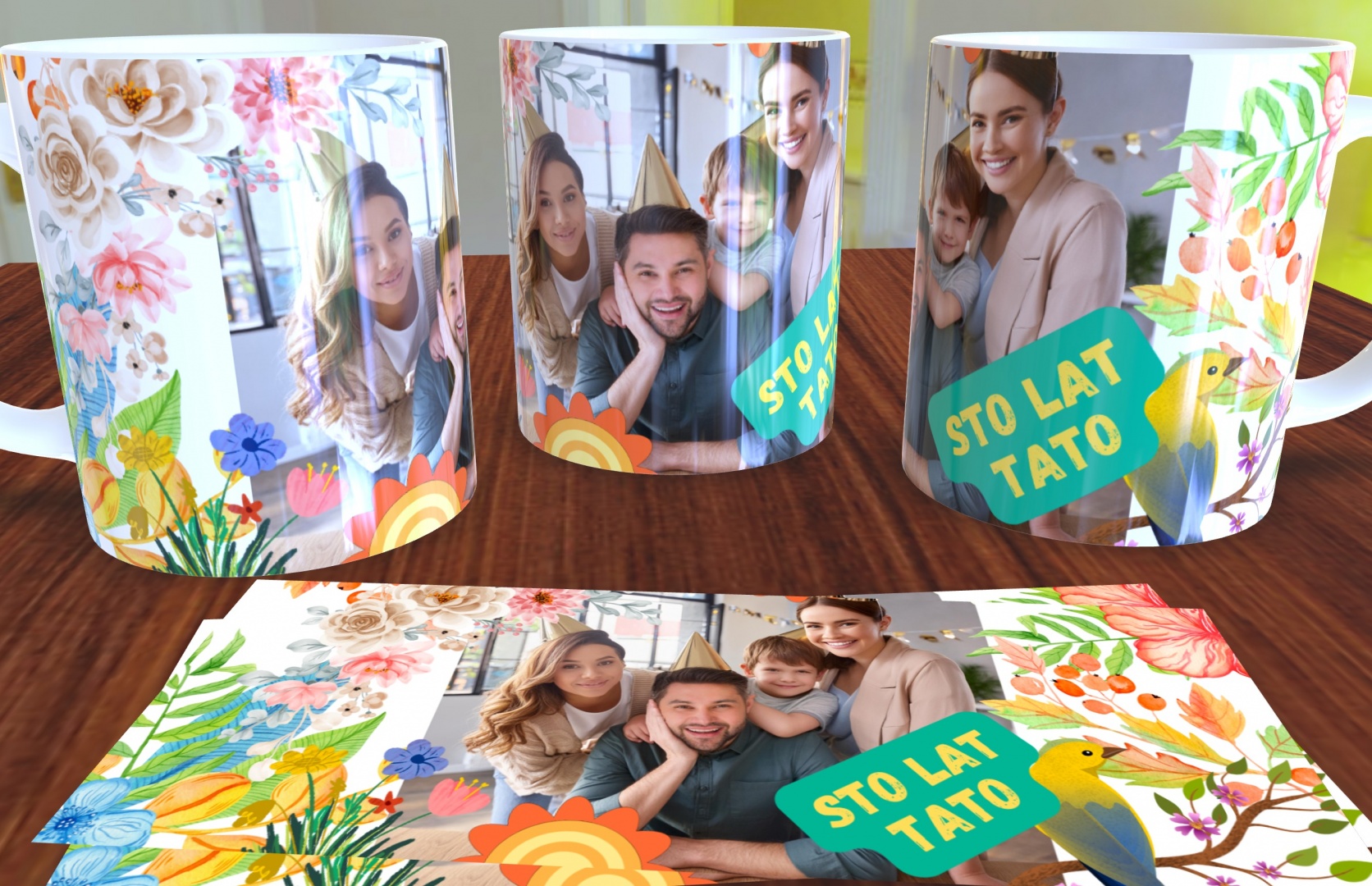 - Kubek ze zdjęciem taty i dzieci oraz napisem "Tata na medal"