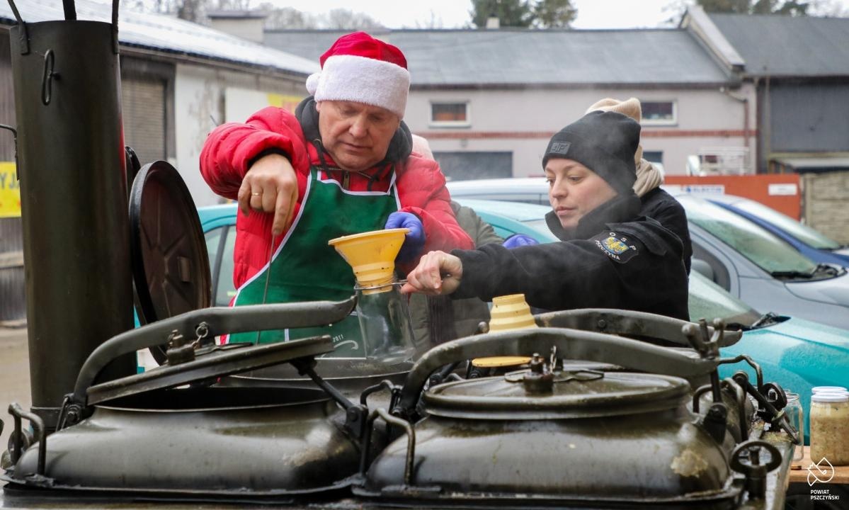 Powiat Pszczyński wspólnie z OSP Pszczyna dostarczył Zupę Wigilijną do trzech pszczyńskich jadłodzielni. Gorąca pieczarkowa była serwowana także na rynku w Pszczynie, gdzie rozeszła się w ciągu niecałej godziny.