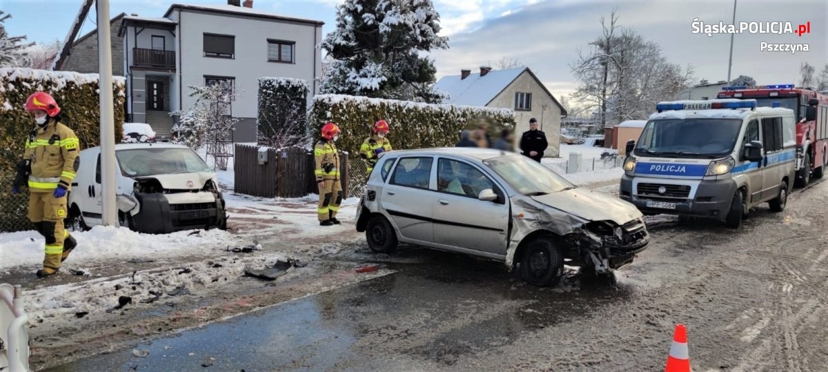 Wraz z końcem tygodnia w powiecie pszczyńskim zmieniły się warunki atmosferyczne. Spadek pierwszego śniegu niewątpliwie wpłynął na pogorszenie się warunków na drodze. W piątek i sobotę policjanci odnotowali znaczny wzrost zdarzeń drogowych. Bez wątpienia najpoważniejszy w skutkach miał miejsce na łuku drogi w Pawłowicach. Do wypadku doszło w piątek, po godzinie 10, gdy 19-letni kierujący samochodem marki Daewoo jadąc ulicą Zjednoczenia, stracił panowanie nad pojazdem. W wyniku czego doprowadził do uderzenia w fiata, który jechał z przeciwnego kierunku, a ten siłą odrzutu uderzył tyłem w ogrodzenie posesji. W skutek zderzenia 46-letni kierujący samochodem osobowym marki Fiat został odwieziony do szpitala z urazem miednicy oraz kręgosłupa.