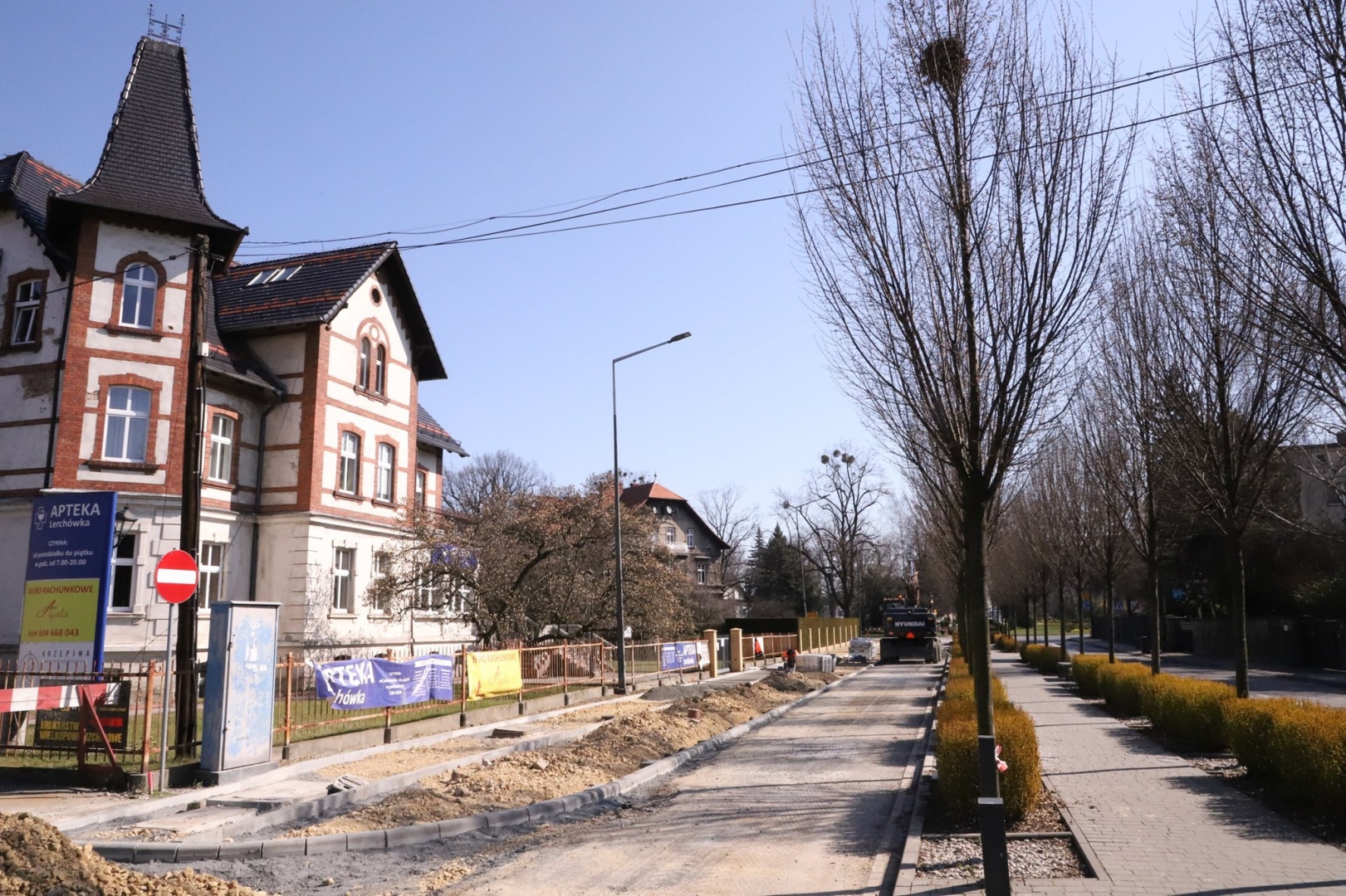 Trwają prace wzdłuż ul. Kościuszki, gdzie powstają kolejne fragmenty ścieżek rowerowych.
