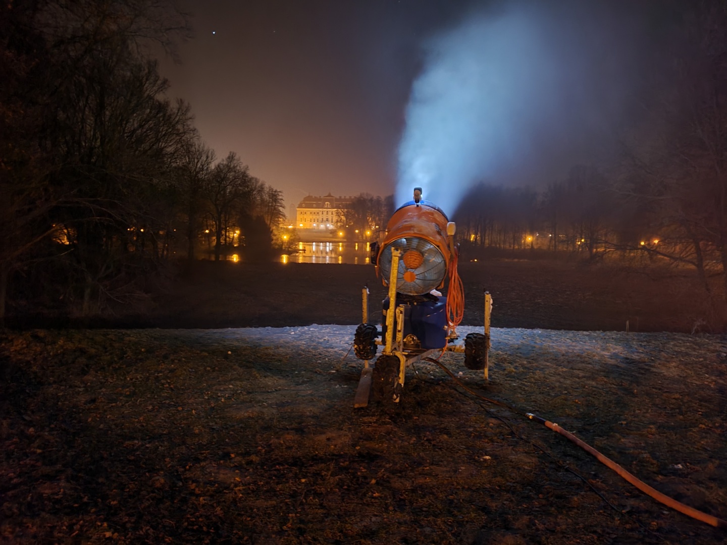 Armatka do naśnieżania przyjechała do Pszczyny ze Szczyrku. Zorganizowane wszystkiego było możliwe dzięki uprzejmości Ośrodka Narciarskiego Beskied Sport Arena oraz klubowi tenisowe-narciarskiemu GregTeam.