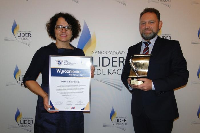 Powiat pszczyński "Samorządowym Liderem Edukacji" oraz "Liderem Bezpieczeństwa w Oświacie" Podczas Gali Finałowej IX edycji Ogólnopolskiego Konkursu i Programu Certyfikacji Gmin, Powiatów i Samorządnych Województw otrzymaliśmy wyróżnienie za szczególne osiągnięcia w dziedzinie polityki oświatowej i zarządzania szkolnictwem