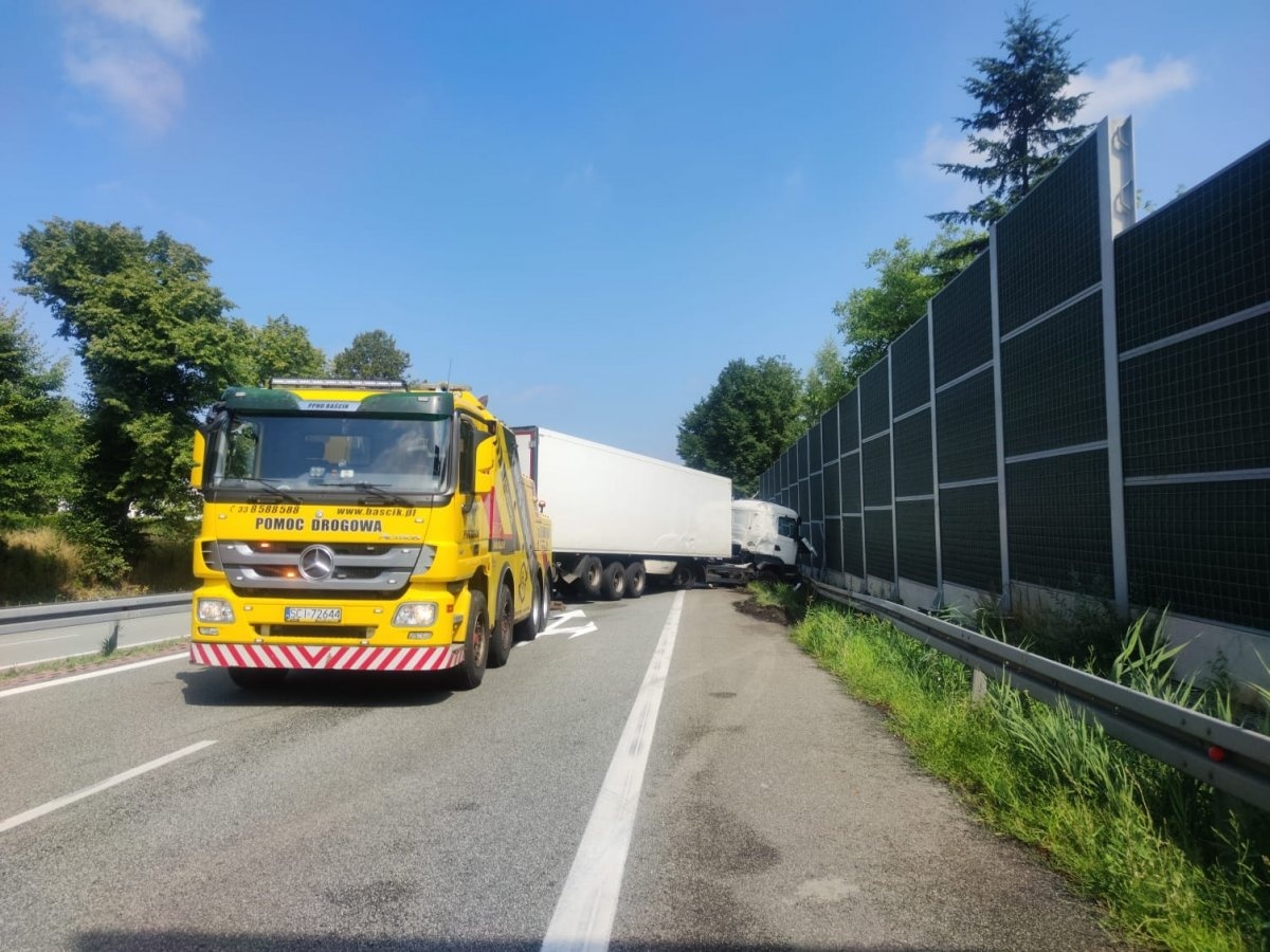 Dzisiaj doszło do zdarzenia drogowego w Warszowicach na drodze krajowej nr 81. Kierujący samochodem ciężarowym uderzył w bariery energochłonne.