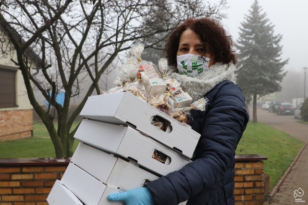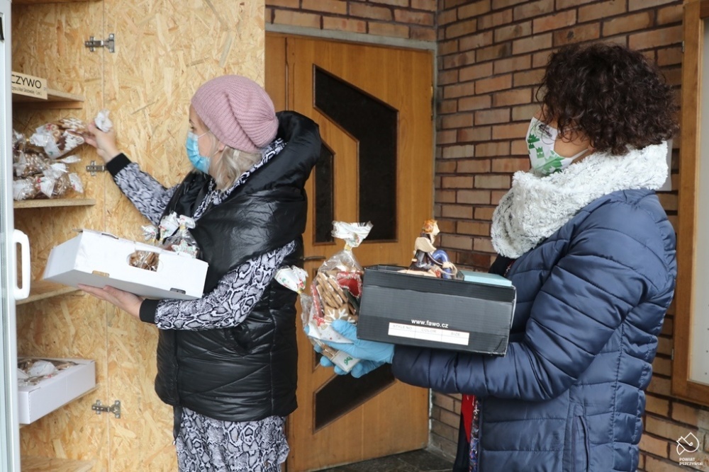 Potrzebujący mogli poczęstować się także bochenkami chleba oraz paczkami ze świątecznymi piernikami. W ten sposób powiat pszczyński postanowił wesprzeć lokalne piekarnie i cukiernie.