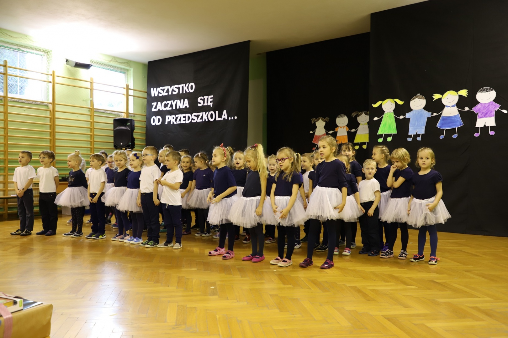 Uroczystości rozpoczęły się przedstawieniem przygotowanym przez wszystkie grupy przedszkolne, Motylki, Żabki oraz Waleczne Pszczółki. Następnie głos zabrał burmistrz Dariusz Skrobol, który podziękował dzieciom za przygotowanie tak pięknego występu oraz wręczył na ręce dyrektorki Urszuli Niezgody prezent dla podopiecznych oraz oczyszczacze powietrza.