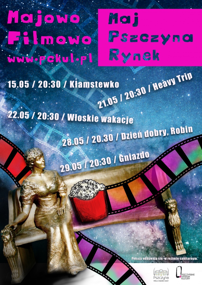 Od 15 maja ruszył cykl “Majowo/filmowo”. Jest to kino plenerowe w każdy piątek i sobotę maja (począwszy od 15.05) na Rynku w Pszczynie.