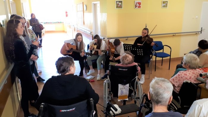 Święta już za nami, a w Zakładzie Pielęgnacyjno-Opiekuńczym pojawiła się młodzież z Zespołu Szkół Nr 1 z Pszczyny, która wniosła jeszcze odrobinę radości świątecznej kolędami zaśpiewanymi razem z podopiecznymi. Były gitary i skrzypce, a młode głosy mieszały się z głosami doświadczonymi przez życie ludźmi, którzy bardzo cieszyli się tą wizytą.